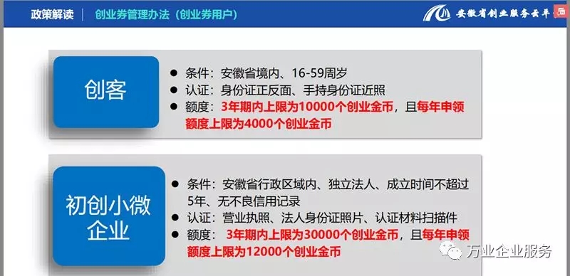 為貫徹落實(shí)黨的十九大關(guān)于鼓勵創(chuàng)業(yè)帶動就業(yè)的精神,深入實(shí)施安徽省五大發(fā)展行動計(jì)劃,提升創(chuàng)業(yè)和初創(chuàng)企業(yè)在共建共享發(fā)展中有更多獲得感,降低創(chuàng)業(yè)成本,安徽省人社廳與財政廳通過發(fā)行電子創(chuàng)業(yè)劵的形式為創(chuàng)業(yè)者和初創(chuàng)企業(yè)提供補(bǔ)貼。全省16個地市30多家服務(wù)商滿足你創(chuàng)業(yè)期間的所有需求。