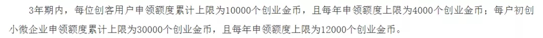 補(bǔ)貼金額:小微企業(yè)申領(lǐng)額度累計(jì)上限為30000個創(chuàng)業(yè)金幣(3000元),且每年申領(lǐng)額度上限為12000個創(chuàng)業(yè)金幣(1200元)