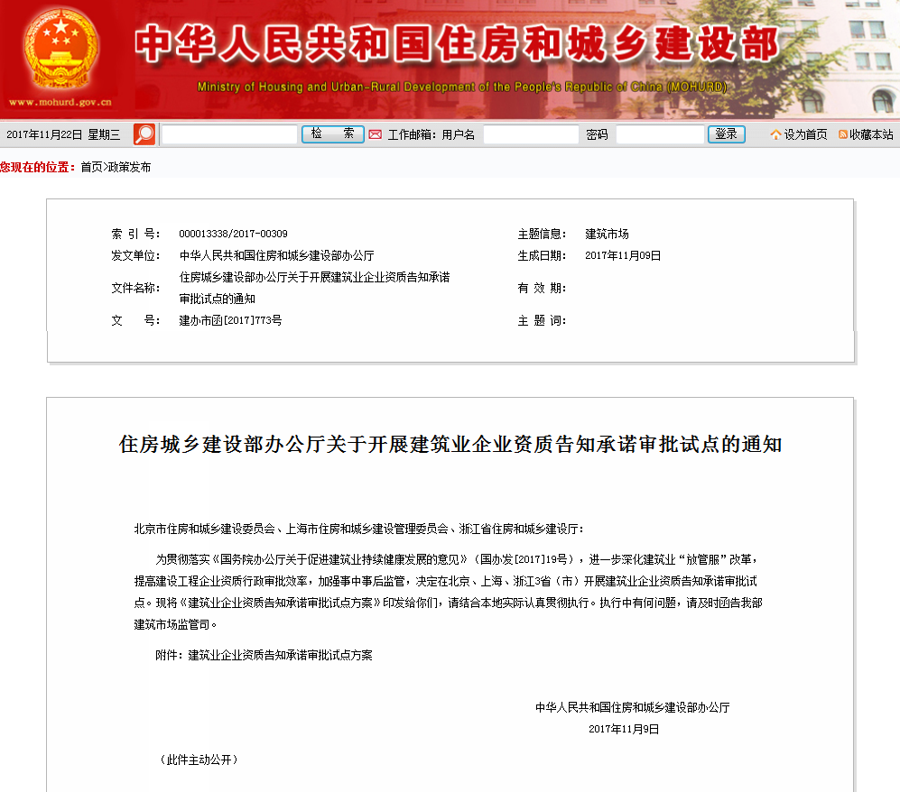 (一)試點地區(qū)于2017年11月底前編制完成本省(市)《建設工程企業(yè)資質(zhì)告知承諾審批試點方案》及操作規(guī)程。