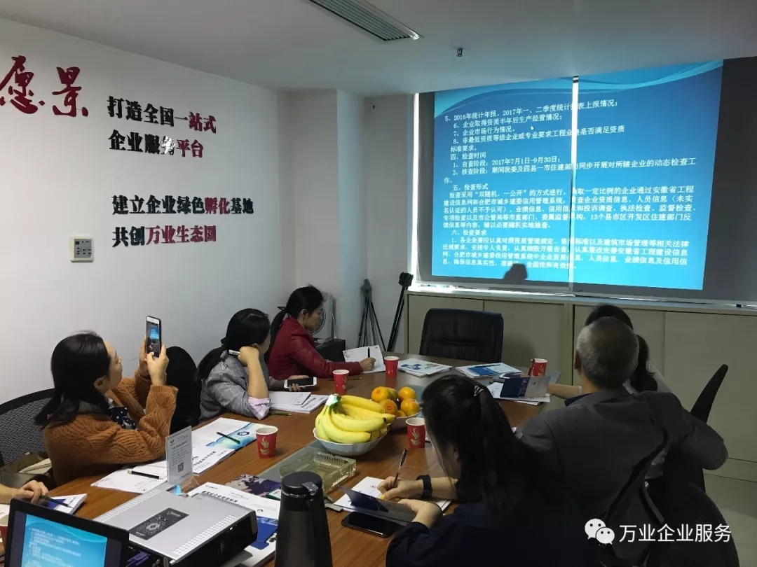 2018年第三季度數(shù)據(jù)上報工作已經(jīng)開始,萬業(yè)公司為各位建筑企業(yè)量身打造的"資質(zhì)維護及稅籌培訓指導講座” 提供每家企業(yè)超受用的指導方案!于10月12日下午,安徽萬業(yè)企業(yè)管理有限公司成功舉辦第三季度資質(zhì)動態(tài)維護座談會!會議邀請了合肥建筑行業(yè)同仁,分享大家最關(guān)心的問題:資質(zhì)日常維護如何做?動態(tài)審核重點在哪里?怎樣合理規(guī)劃稅籌?