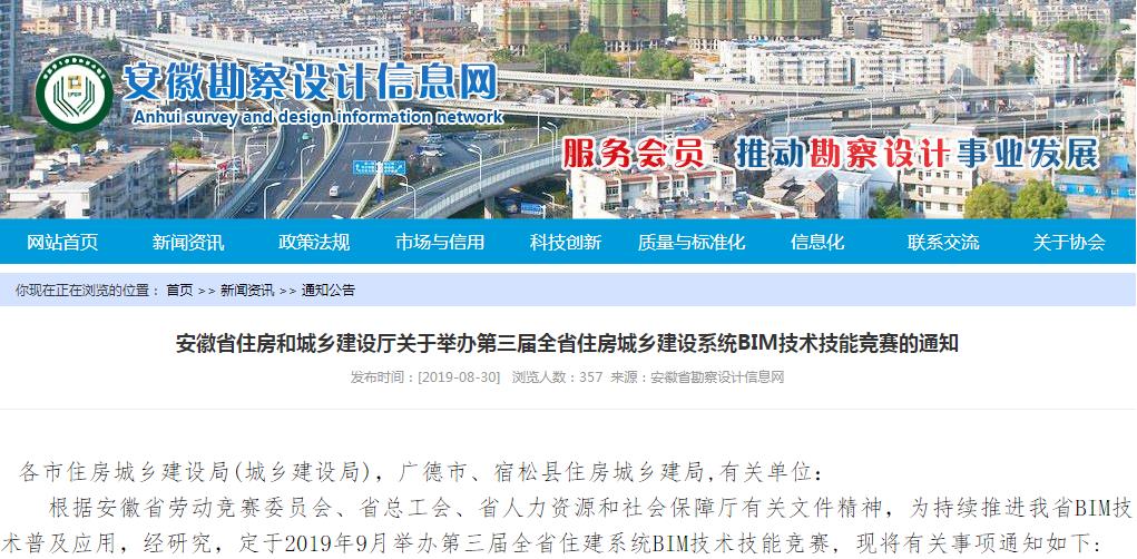 近日,安徽省將BIM技術(shù)提上日程,定于9月舉辦第三屆全省住房城鄉(xiāng)建設(shè)系統(tǒng)BIM技術(shù)技能競賽!