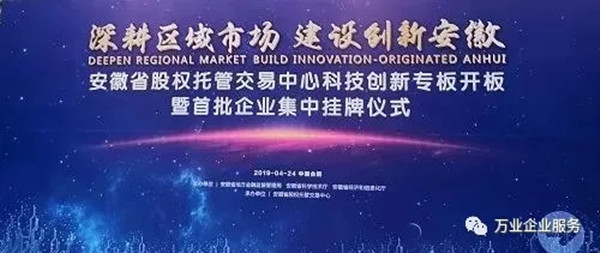 熱烈祝賀安徽萬(wàn)業(yè)企業(yè)管理有限公司入駐安徽省股交中心首批科創(chuàng)板企業(yè)?。?!