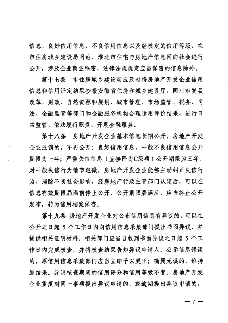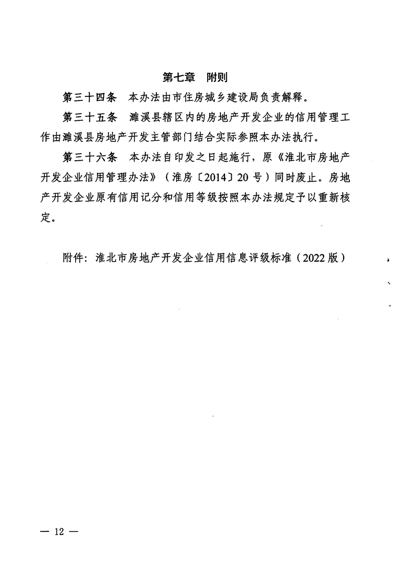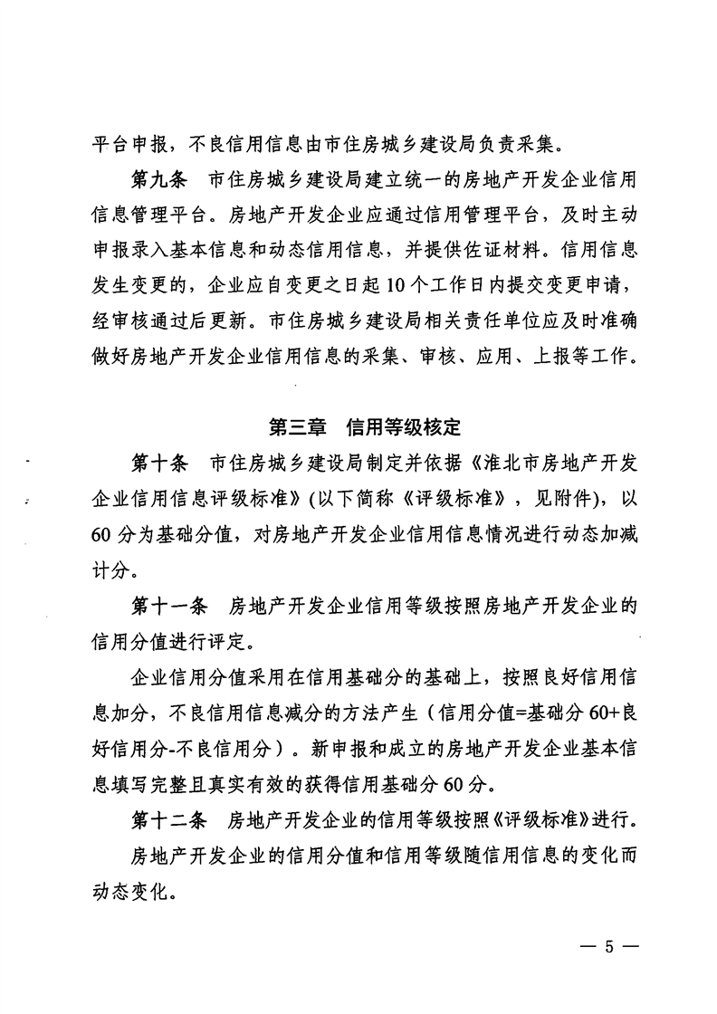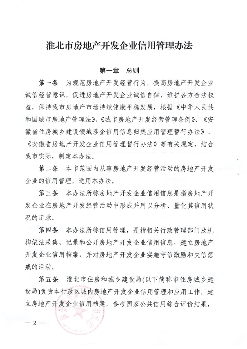 重磅消息!淮北市住房和城鄉(xiāng)建設(shè)局官網(wǎng)昨日發(fā)布關(guān)于印發(fā)《淮北市房地產(chǎn)開發(fā)企業(yè)信用管理辦法》的通知(淮住建規(guī)【2022】1號(hào))文件,擬對(duì)開發(fā)商信用進(jìn)行評(píng)級(jí),并根據(jù)開發(fā)企業(yè)信用不同等級(jí)實(shí)施差異化管理,為規(guī)范房地產(chǎn)開發(fā)經(jīng)營行為,促進(jìn)房地產(chǎn)業(yè)持續(xù)健康穩(wěn)定發(fā)展提供政策指引。具體內(nèi)容如下: