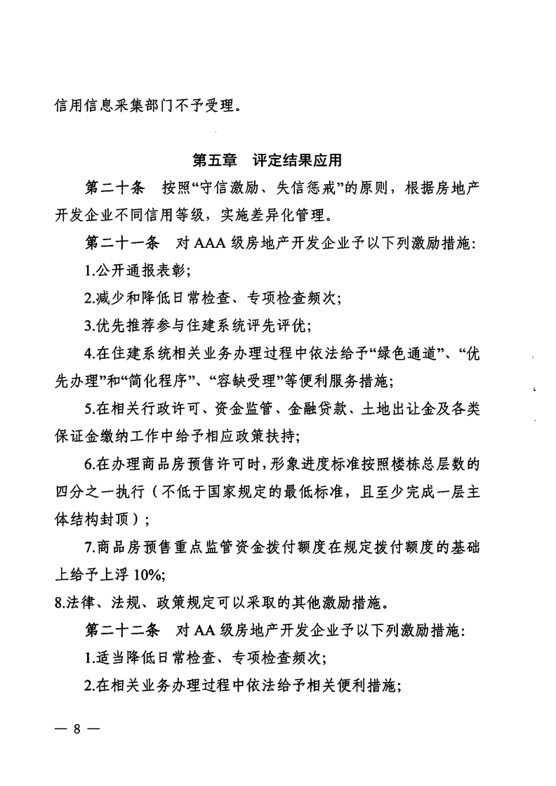 為繼續(xù)推進(jìn)行業(yè)信用體系建設(shè),房地產(chǎn)開發(fā)相關(guān)部門宜進(jìn)一步深化信用管理,積極探索開發(fā)企業(yè)信用評(píng)價(jià)結(jié)果的使用,引導(dǎo)開發(fā)企業(yè)積極創(chuàng)優(yōu),提高房地產(chǎn)開發(fā)企業(yè)誠信經(jīng)營意識(shí),鼓勵(lì)開發(fā)企業(yè)走責(zé)任地產(chǎn)、品質(zhì)地產(chǎn)之路,為社會(huì)提供更好的產(chǎn)品和服務(wù)。